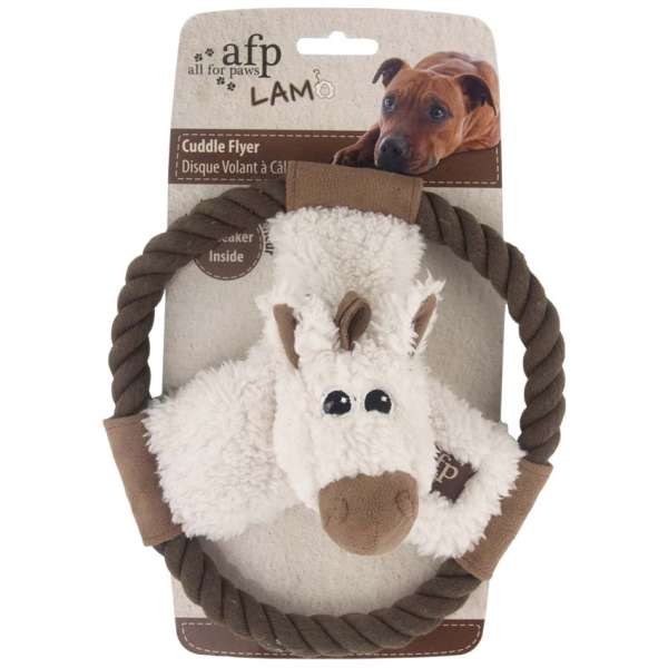 Die Plüschtiere bestehen aus extra weichem Lammfell-Imitat und laden mit dem Ring aus Seil zum Spielen und Jagen ein.