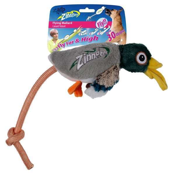 Die AfP Zinngers sind das ideale Spielzeug für das gemeinsame Spiel mit Ihrem Hund im Freien. Mit dem Gummischleuder-Mechanismus im Inneren können die Spieltiere ohne Anstrengung bis zu 30 Meter weit fliegen. Ihr Hund wird es lieben, die Zinngers zu jagen und zu apportieren. Die Plüschtiere sind mit einem Squeeker ausgestattet.