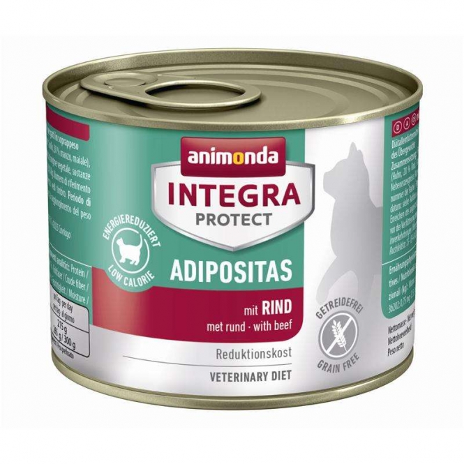 INTEGRA PROTECT ADIPOSITAS Katzennahrung wurde speziell für übergewichtige Katzen entwickelt. Durch die reduzierte Energiezufuhr wird das Übergewicht verringert. Gleichzeitig enthält diese Diätnahrung kein Getreide und ist somit für Katzen mit einer Getreideunverträglichkeit geeignet. INTEGRA PROTECT Diätfutter schützt, hilft und schmeckt.