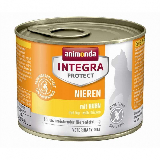 INTEGRA PROTECT NIEREN Katzennahrung wurde speziell für Katzen mit chronischer Niereninsuffizienz entwickelt. Durch den reduzierten Eiweiß- und Phosphorgehalt wird die Nierenfunktion unterstützt. Gleichzeitig enthält diese Diätnahrung kein Getreide und ist somit für Katzen mit einer Getreideunverträglichkeit geeignet. INTEGRA PROTECT Diätfutter schützt, hilft und schmeckt.