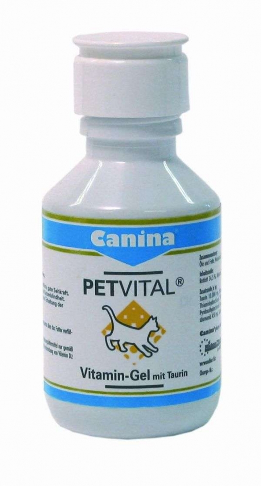 Speziell auf den Katzengeschmack abgestimmtes Vitamin-Gel mit lebenswichtigem Taurin. Zum Ausgleich von Nährstoffdefiziten bei absolut unzureichender Vitaminzufuhr, herabgesetzer Verwertbarkeit und Resorption z.B. durch Krankheit. Taurinmangel kann zur Erblindung der Katze führen. Bei Bedarf ist eine lebenslange Zufütterung zu empfehlen. , Inhalt: 100ml , Zusammensetzung: Öle und Fette, Malzextrakt, Molkepulver (teilentzuckert), Hefe, DL-Methionin , Inhaltsstoffe: Rohfett 24,5%, Rohasche 2,5%, Rohprotein 8,0%, Rohfaser 0,1% , Zusatzstoffe je kg: Taurin 10.000mg, Vitamin E 4.000mg, Vitamin D3 25.000 IE, Vitamin B1 als Thiaminhydrochlorid 100mg, Vitamin B2 als Riboflavin, Vitamin B6 als Pyridoxolhydrochlorid 50mg, Vitamin B12 1.000µg, Cholinchlorid 12.500mg, Nikotinsäureamid 450mg, Calcium-Pantothenat 150mg, Biotin 4.000µg , Fütterungsempfehlung pro Tier und Tag: 1 Teelöffel vorzugsweise über das Futter. Junge Katzen erhalten die Hälfte