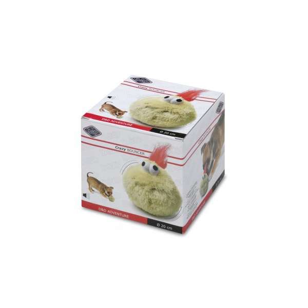 Elektronisches Spielzeug für Hunde. Der Bouncer ist ein batteriebetriebenes Aktiv-Spielzeug, welches durch einen eingebauten Zentrifugenmotor selbstständig und willkürlich die Richtung ändern kann. Im Lieferumfang ist ein Plüschfell-Holster mit aufgenähten Glupschaugen und formbaren Haaren enthalten, welcher mit einem Klettverschluss versehen ist und dazu dient, dem Bouncer eine lustige Schutzhülle zu verleihen. Dazu gibt der Crazy Bouncer auch Geräusche eines bellenden Hundes von sich. Nach Aktivierung, bewegt und springt der Ball für 20 Sekunden in unterschiedliche Richtungen, bis er stehen bleibt. Nach einer weiteren Berührung geht der Spass wieder von vorne los. Beschäftigungsintensiv gegen Langeweile durch die Aktivierung des natürlichen Jagdtriebes bei Hunden. 3x AAA Batterie im Lieferumfang enthalten.