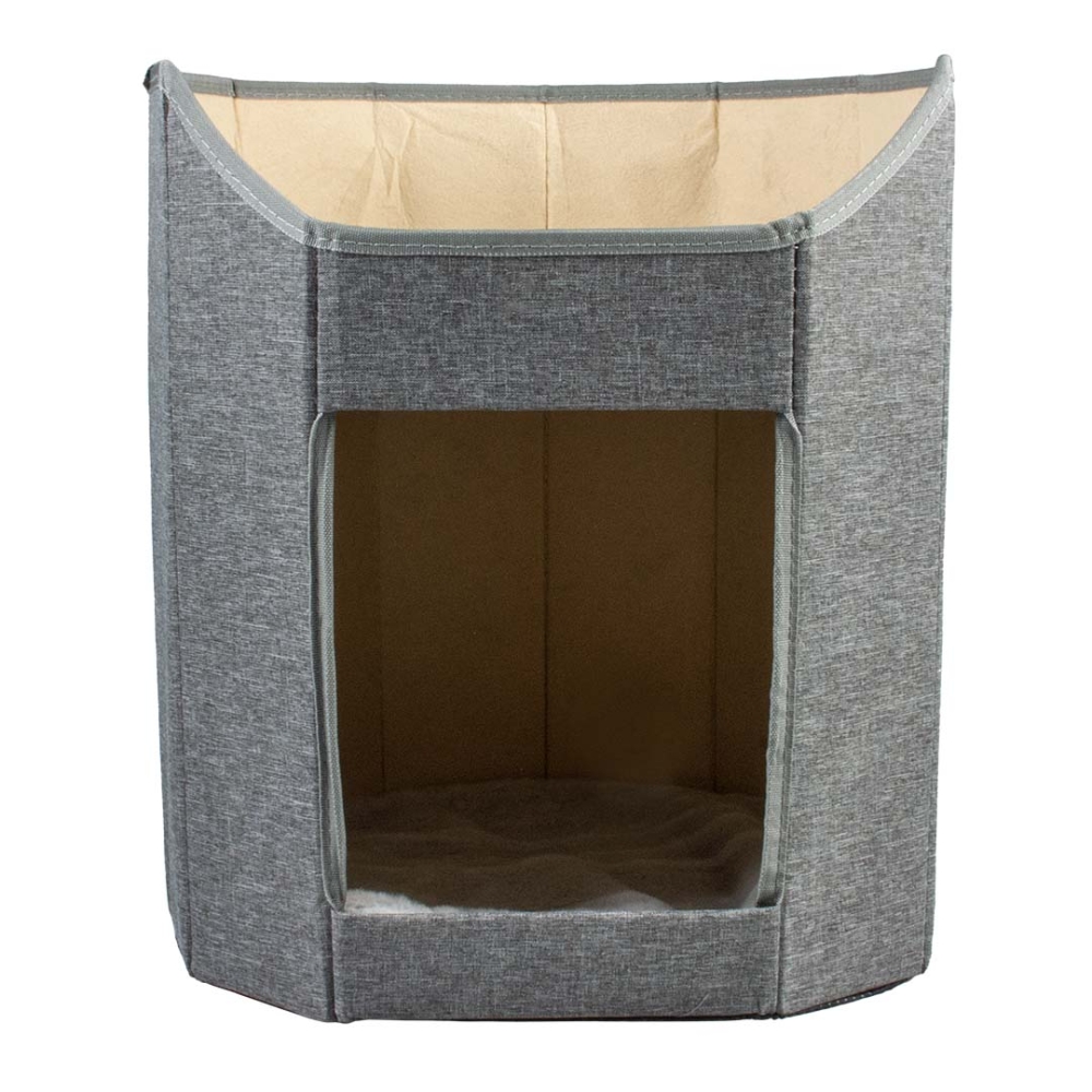 Das duvoplus faltbare Katzenhaus ist der perfekte Rückzugsort für Katzen, die Gemütlichkeit und Komfort lieben. Dieses kompakte Haus bietet gleich zwei kuschelige Schlafplätze, jeweils mit einem weichen Kissen für zusätzlichen Liegekomfort. Dank des faltbaren Designs lässt sich das Haus leicht transportieren, flach zusammenpacken und bequem verstauen.
