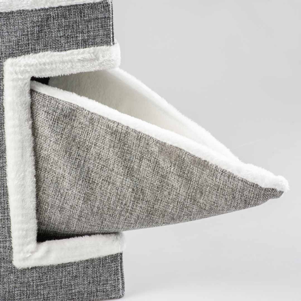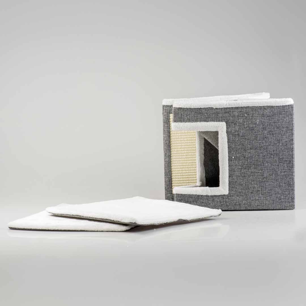 Das Katzenkratzhaus Gaby von duvoplus ist ein gemütlicher und sicherer Rückzugsort für deine Katze. Das Häuschen ist faltbar und hat eine eingearbeitete Sisal-Kratzmatte. Es hat 2 Liegeflächen und ist mit weichem Plüsch und einem herausnehmbaren Kissen ausgestattet. Gaby ist kompakt und passt daher überall leicht in dein Zuhause.