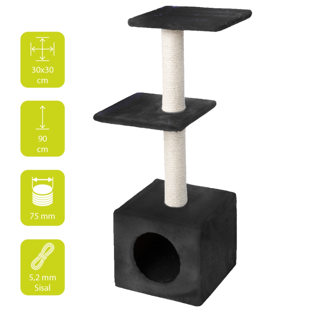 Katzen brauchen ein solides Kratzmöbel, damit sie ihre Krallen pflegen und ihr Territorium abgrenzen können. Sisal ist eine natürliche und sehr robuste Faser, die der Katze hilft, die schuppige obere Krallenschicht zu entfernen. Das verhindert das Einwachsen der Krallen. Ein Kratzmöbel ist daher ein Muss für jede Katze! Dieses klassische Katzenmöbel passt in jede Einrichtung. Auf den weichen, angenehmen Plüsch sowie den fest verklebten Sisal ist jede Katze verrückt!