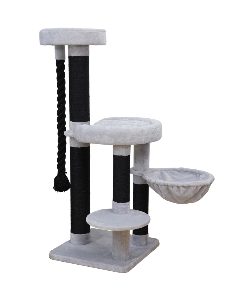 Spielender Plüsch Kratzbaum mit Kletterseil
