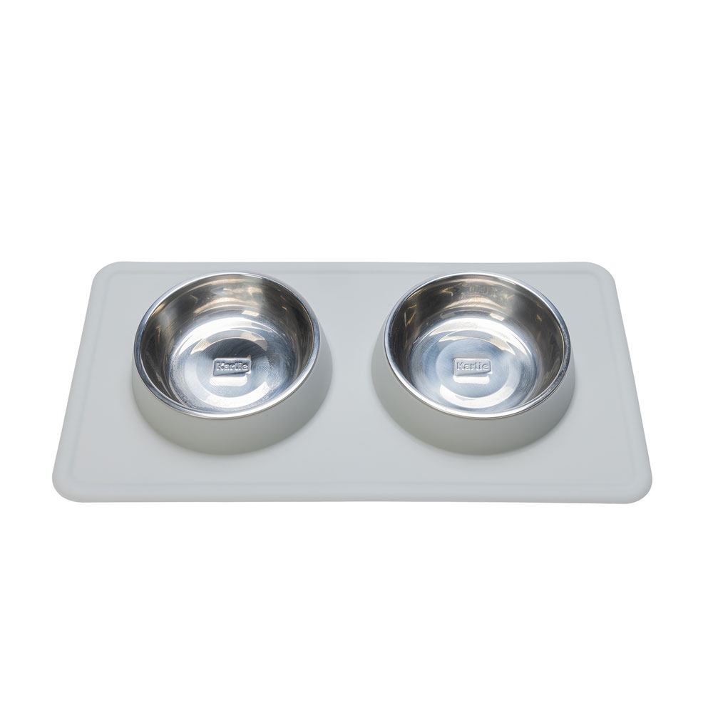 Mit dem Diner Set Dex von Karlie können Sie Ihren Hund mit Futter und Wasser versorgen. Dieses Set hat 2 herausnehmbare Edelstahlschüsseln. Diese Edelstahlschüsseln können in der Spülmaschine gereinigt werden. Edelstahl sorgt dafür, dass der Geruch von Hundefutter nicht aufgenommen wird. Der Rand von Dex ist aus rutschfestem Silikon, damit die Schale an Ort und Stelle bleibt. Außerdem sammelt die Silikonschale verschüttetes Wasser und/oder Futter auf.