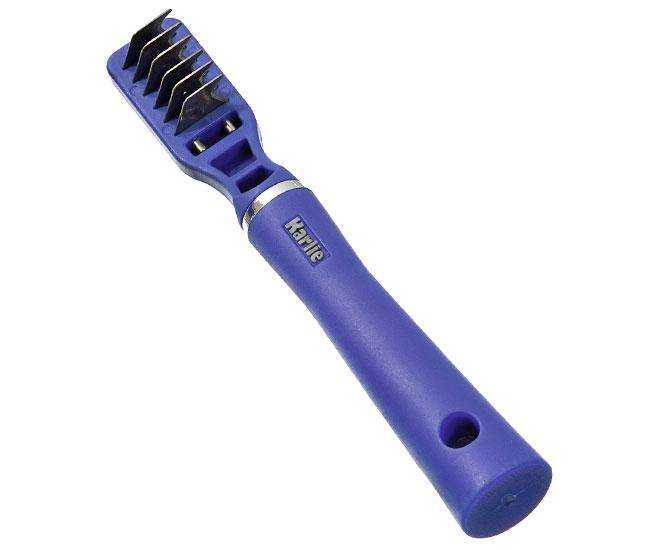 Blaues Entfilzungsmesser mit 6 Klingen für Katzen mit langem Fell aus der Karlie Perfect Care Pflegeserie.