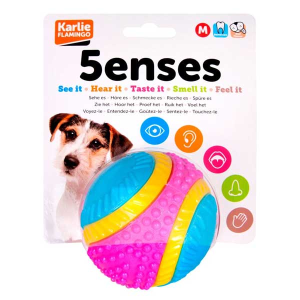 Der Karlie Flamingo 5 Senses Ball spricht die 5 Sinne Ihres Hundes an: Sehen, Hören, Schmecken, Riechen und Fühlen.