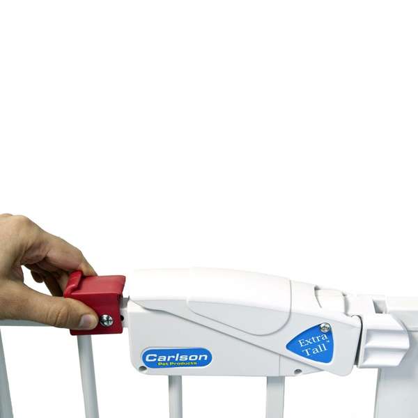 Das große Hundetürschutzgitter Carlson ist einsetzbar auf einer Breite von ca. 74 cm bis 86 cm und hat eine Höhe von ca. 104 cm.