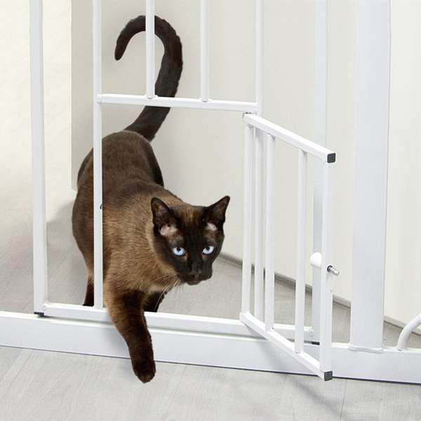 Es verfügt über einen praktischen Türöffnungsmechanismus mit Sicherheitsverschluss und eine patentierte, ca. 25 x 18 cm große Kleintiertür für Katzen und Welpen. Die Klemmmontage erfolgt durch 4 Klemmvorrichtungen. Robustes, langlebiges, bleifreies, ungiftiges, bissfestes Material (Stahl).