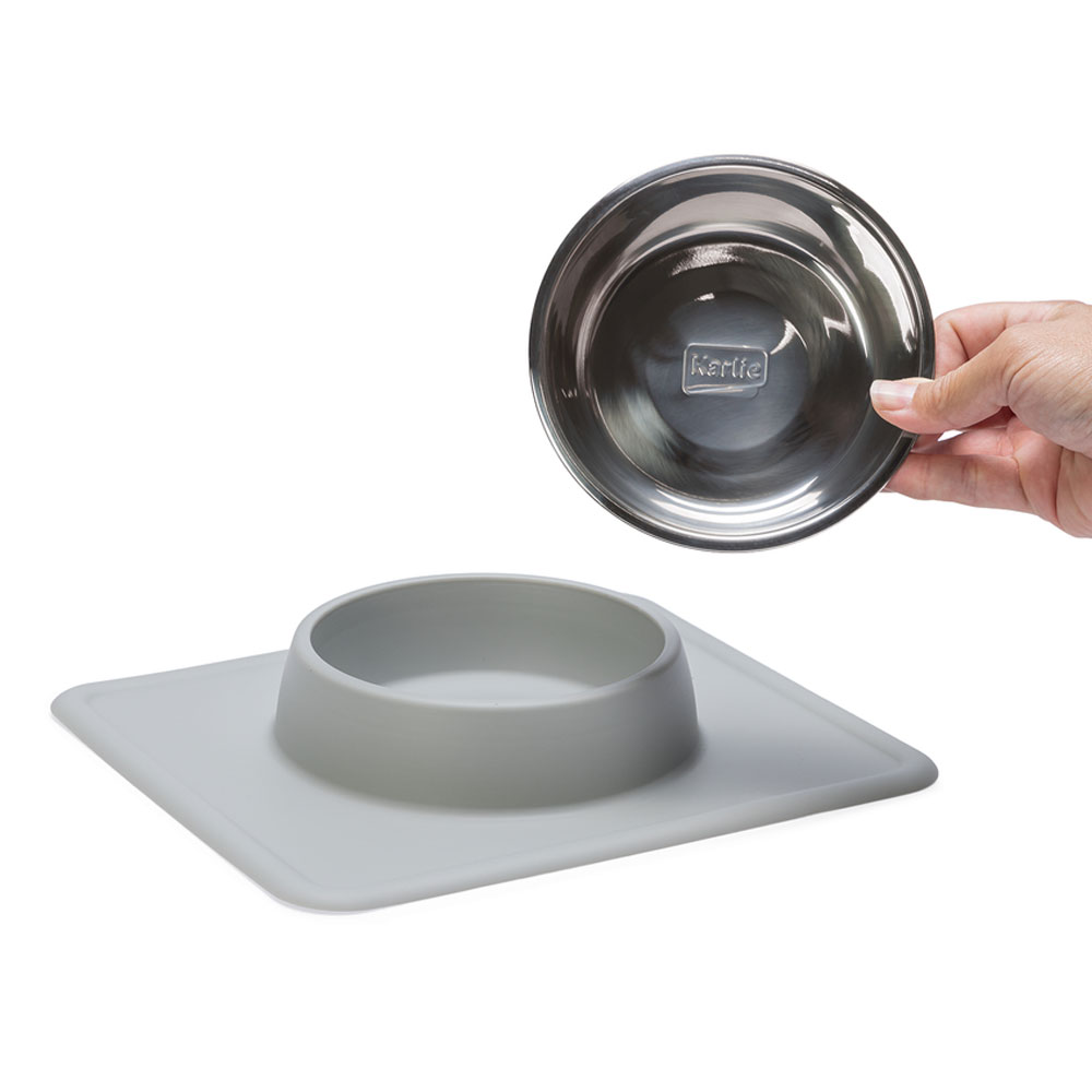 Der Hundefutternapf Dex von Karlie ist ideal, um Ihren Hund mit frischem Futter oder Wasser zu versorgen. Dieser Futternapf ist mit einem abnehmbaren Edelstahlnapf ausgestattet. Der Edelstahl sorgt dafür, dass Essensgerüche nicht aufgenommen werden. Zudem kann die separate Edelstahlschüssel in der Spülmaschine gereinigt werden. Der Rand von Dex ist aus rutschfestem Silikon, damit die Schale an Ort und Stelle bleibt. Außerdem sammelt die Silikonmatte verschüttetes Wasser und/oder Futter auf.