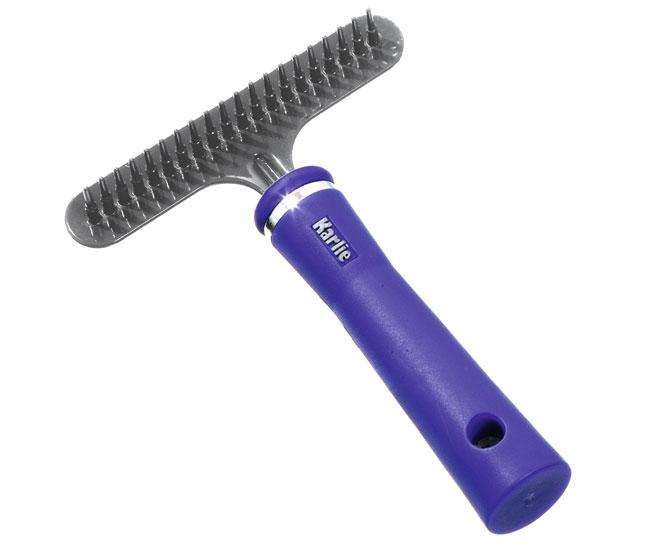 Blauer, einreihiger Fellstriegel mit Gleitbeschichtung für Katzen mit langem Fell aus der Karlie Perfect Care Pflegeserie. Größe: 15 cm