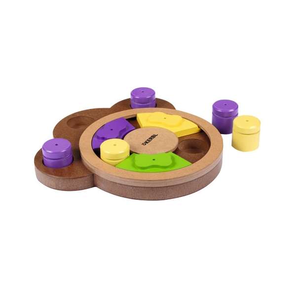Paw ist ein besonderes Spielzeug, das Spaß und Strategie miteinander verbindet. In das Spielbrett sind Vertiefungen eingearbeitet. In diesen Vertiefungen werden Leckerlies versteckt, die Ihr Hund versucht aufzuspüren. Nach einer gewissen Übungszeit gelingt es ihm, die lackierten Holzkegel anzuheben und  die Schiebedeckel mit seiner Nase oder seinen Pfoten zu öffnen und sich die Belohnung zu erobern.