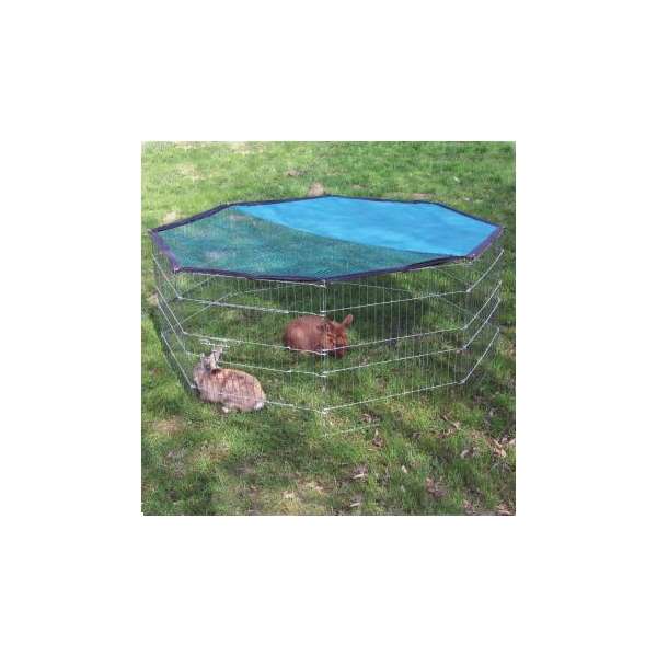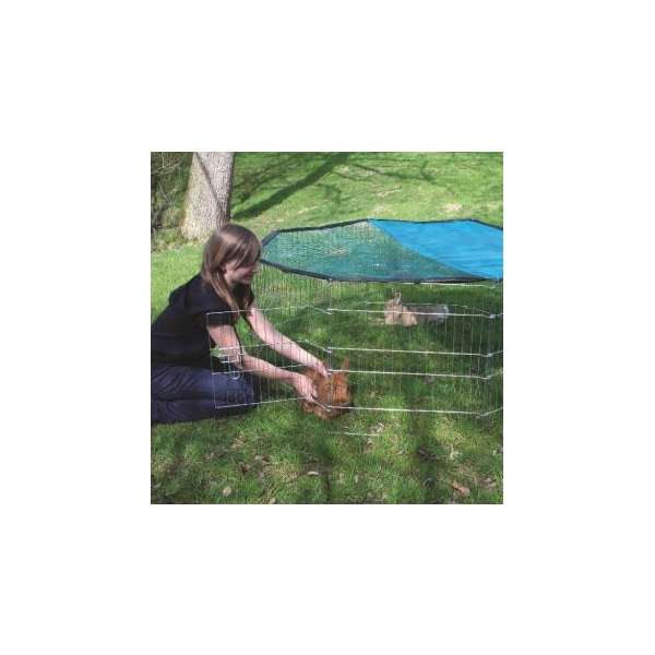 Das im Lieferumfang natürlich enthaltene Schutznetz dient zum Schutz vor hereinfallenden Gegenständen, vor Greifvögeln und Katzen und verhindert zusätzlich das Herausspringen Ihres kleinen Lieblings aus dem Freigehege. Der integrierte Sonnenschutz spendet an heißen Tagen ein kühles schattiges Plätzchen.