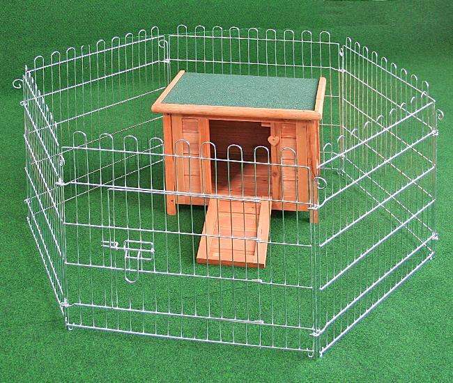 Super geeignet für Kaninchen, Meerschweine oder andere Nager. Der Feilauf besteht aus 6 Seiten-Elementen, von denen eines mit einer Türe versehen ist. Die 6 Fixierungsstangen/Erdspieße sorgen für die nötige Stabilität und dienen zum Aufbau und zur Fixierung z.B. auf einer Wiese. Der Freilauf ist auch bestens für die Wohnung und für harte Untergründe geeignet.