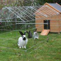 Dieses verzinkte Freilaufgehege lässt sich sowohl einzeln verwenden, als auch in Kombination mit dem Maxi Pet Kleintierstall (AK-82807-SV) (siehe Bild). Es ist geeignet für große Kaninchen, Hasen und Hüher und wird inklusive Sonnenschutz geliefert. Das Gehege ist ausgestattet mit 3 Türen und wird mithilfe von Erdspießen im Boden befestigt. Einfache Montage!