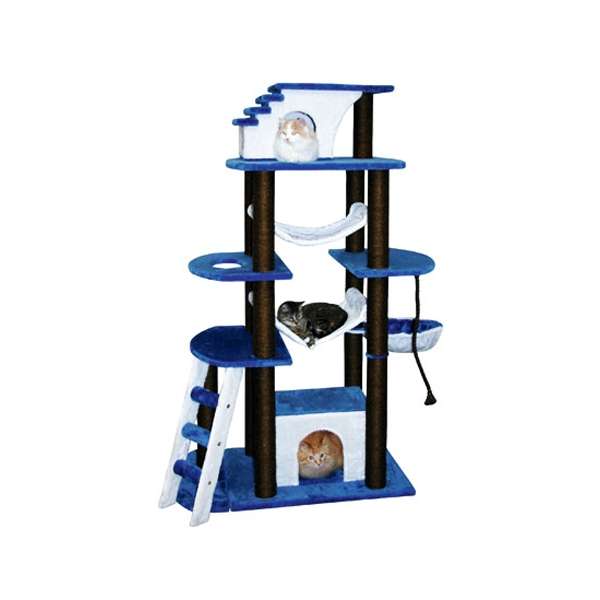 Dieser Kratzbaum ist Schlafplatz und Abenteuerspielplatz in einem. Mit seinen 2 Hängematten, 2 Schlafhäuschen und der Liegemulde bietet er auch für mehrere Katzen genügend gemütliche Liegeplätze.