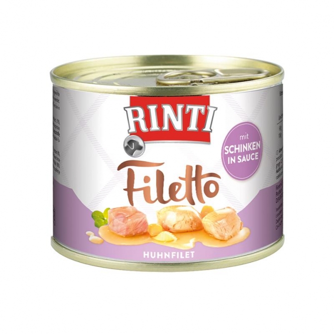 Für Rinti Filetto wird ausschließlich mageres Huhnfilet, ausgewählte Innereien und Schinken in gewachsenen, natürlichen Stücken verwendet. Eiweißreich, mit wenig Fett, ergänzt mit Kohlenhydraten und Gemüse in leckerer Sauce. Alleinfuttermittel für ausgewachsene Hunde.