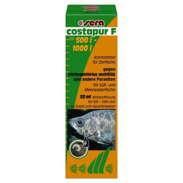 Das bewährte Heilmittel gegen Ichthyophthirius (Weiße-Pünktchen-Krankheit) und andere Hautparasiten wie Costia, Chilodonella und Trichodina bei Süß- und Meerwasserfischen.