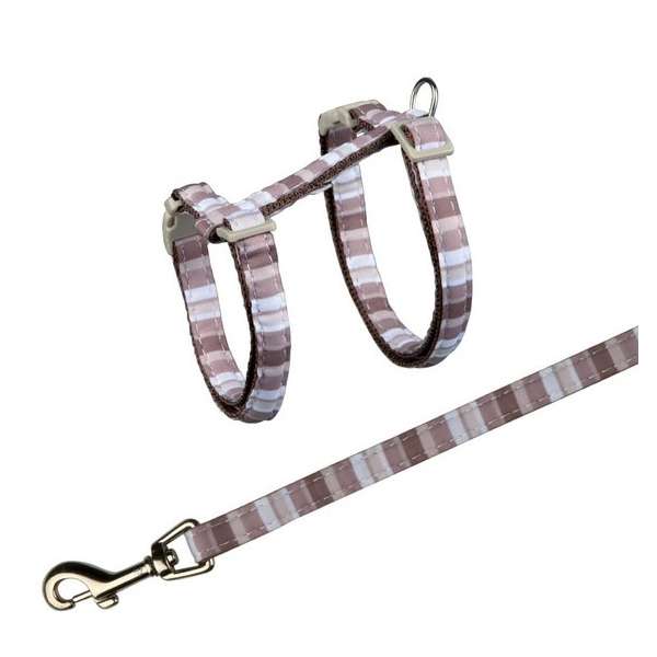 Das Katzengeschirr im modernen Streifendesign besteht aus Nylon mit aufgenähtem Motivband. Durch eine spezielle Fütterung, die zudem wasserabweisend ist, ist das Geschirr extra weich und somit besonders angenehm zu tragen.