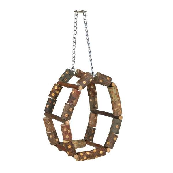 Das Klettergerüst kann nach Belieben z.B. als Ring oder Turm geformt werden. Zur einfachen Befestigung im Käfig- oder Volierengitter ist eine Kette mit verschließbarem Haken vorhanden. Geeignet für Wellensittiche, Kanarien und ähnlich große Vogelarten.
