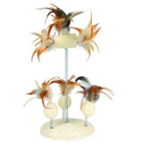 Dieses Katzenspielzeug besteht aus Luffa-Elementen mit Federn, die auf Spiralfedern sitzen und dadurch natürlich bei jeder Berührung lustig wackeln. Der Standfuß des Spielzeugs ist mit Sisal bezogen.